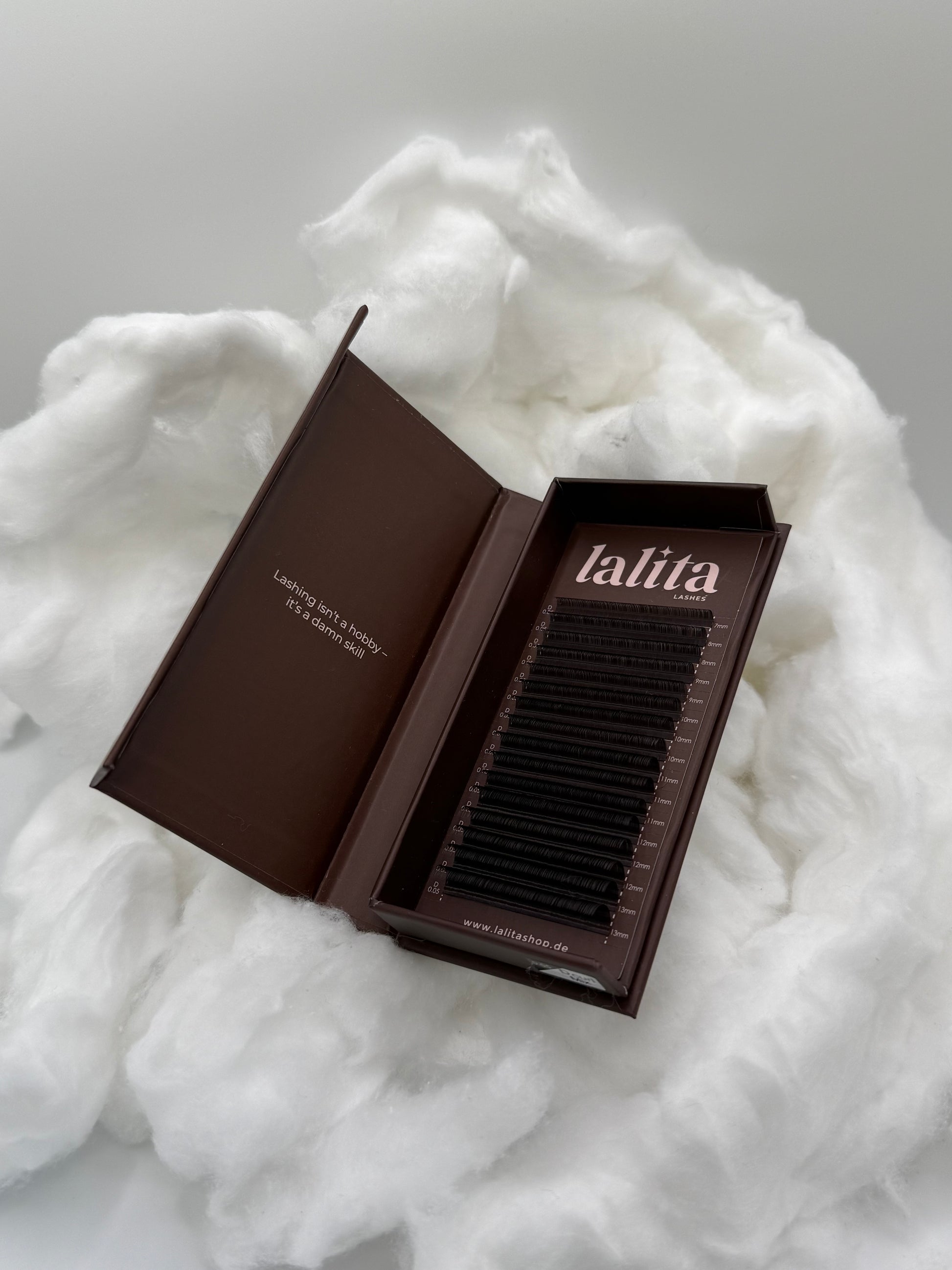 Unsere Instant Brown Lashes vereinen das Beste aus beiden Welten: edles, mattbraunes Finish für einen weichen, natürlichen Ausdruck – kombiniert mit höchster Qualität und Flexibilität. Das sanfte Braun schmeichelt jedem Hautton, verleiht dem Blick Tiefe und wirkt gleichzeitig weniger hart als klassisches Schwarz. Perfekt für Kundinnen, die subtile Eleganz und luxuriösen Tragekomfort schätzen.