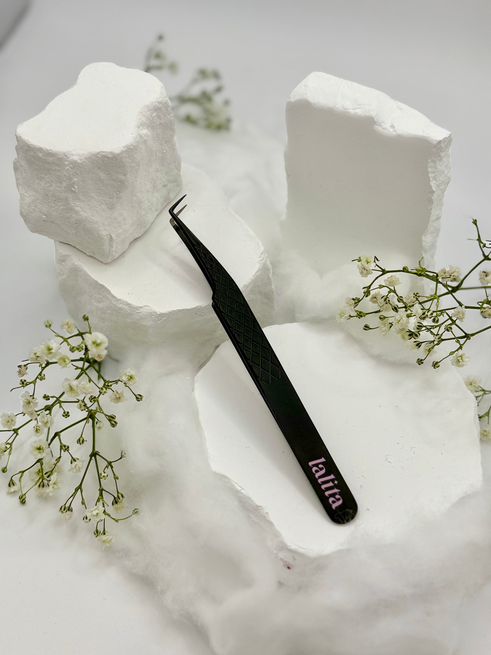 Im Gegensatz zu klassischen Volumenpinzetten ist diese Variante etwas schlanker und dadurch vielseitiger einsetzbar – ob für 1:1-Applikationen, Hybridtechniken oder dezente Volumen-Looks. Die integrierte Fiber Tip-Beschichtung sorgt dabei für konstanten Halt und minimiert den Zeitverlust durch verlorene Fächer.